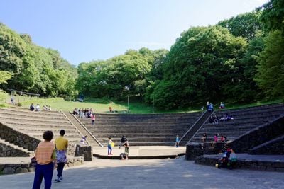 Shikinomori Park spans 45.3 hectares of land with gardens, ponds, and playgrounds distributed across multiple landscaped sections in Kanagawa Prefecture.