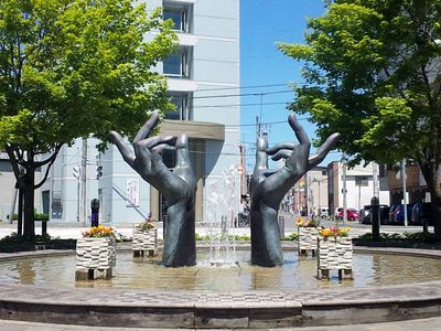 Hands, Bronze fountain sculpture in Heiwa-dōri Kaimono Kōen, Japan