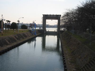 The Edogawa Lock Gate is a water control structure located where Tokyo and Chiba Prefecture meet. It comprises five gates that regulate water flow between the Edogawa River and its older channel.