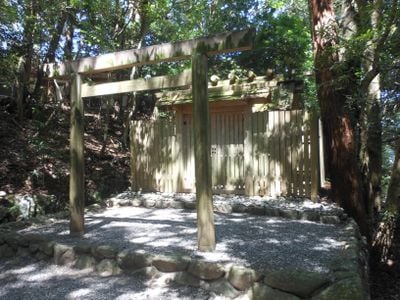 Tsunaga Shrine is a traditional shrine in Ise with wooden structures built in Shinmei-zukuri style, positioned directly in front of Kotai Jingu. The grounds feature a sacred well called Tatsunoi where visitors can collect water, along with walking paths that wind through natural gardens and wooded areas.