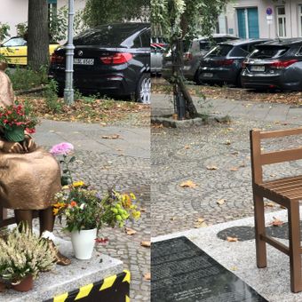Additional empty chairs stand beside the figure, allowing visitors to sit down. This design element enables a physical approach to the monument and invites people to symbolically take a seat next to the seated figure.