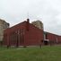 The building features modern ecclesiastical architecture with simple rectilinear forms, large windows for natural light, and functional interior spaces designed for congregational worship and community activities.