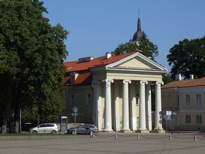 Located near the Presidential Palace and Vilnius University, the building now houses several establishments including a copying service and a bookstore.