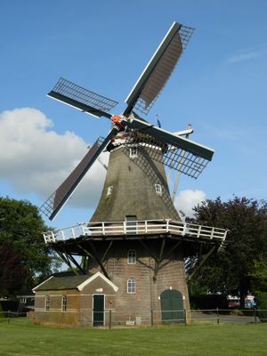 The mill represents centuries of Dutch milling techniques, demonstrating the connection between agricultural practices and wind power utilization in the Netherlands.