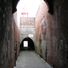Gotische korfboog aan de zijde van de Beursstraat doorgang afsluitend bewerkte sleutelstukken. De boog ontspringt op gebeeldhouwde draagsteentjes (waarvan een verdwenen). Twee schamppalen