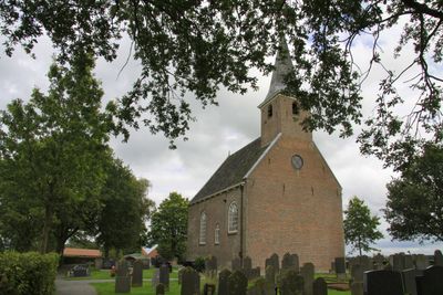 Grote stelphoeve met zes smalle woonhuisvensters ter weerszijden van de ingang, twee melkkeldervensters met siernissen en met stookhut