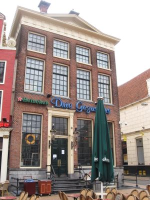 The building sits on the Grote Markt in the heart of Groningen's city center and is easy to reach on foot. The facade is visible from the square where it stands among other heritage structures.