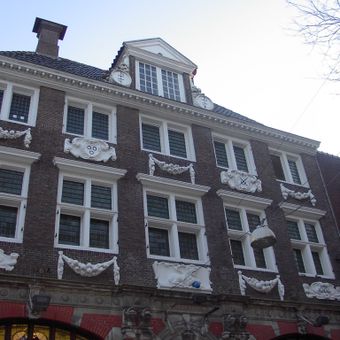 The structure contains a royal coat of arms, marking its status as a supplier to the Dutch royal court in past centuries.
