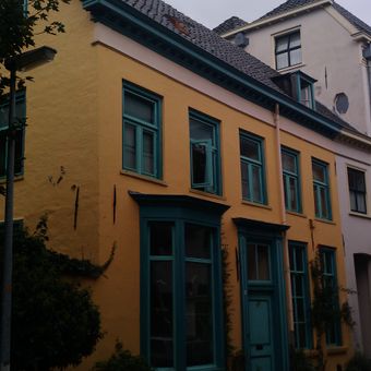 Pand dat deel uitmaakt van complex van drie panden, die drie zijden van een kleine binnenplaats omsluiten