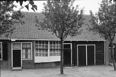 Dwarspand, langs gevel met schuiframen met houten schuurtje, building in Borsele, Netherlands
