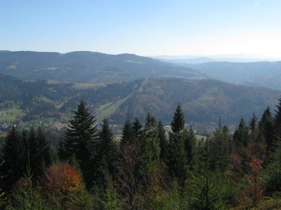 The peak provides clear views extending across both Polish and Czech territories, making it a central point for cross-border nature observation.