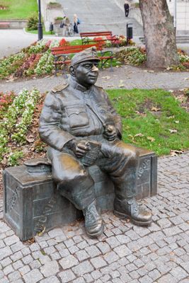 Josef Švejk monument in Przemyśl, Bronze bench monument at Market Square, Przemyśl, Poland