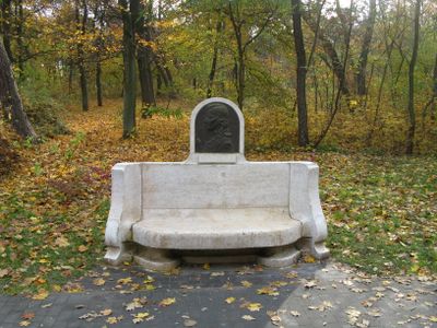 The bench was constructed in 1909 following the initiative of local high school director Dr. Maydarn to commemorate the 150th birthday of Friedrich Schiller.