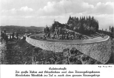The curve combines transportation functionality with a viewing point, offering perspectives of the Giant Mountains while testing drivers' abilities.