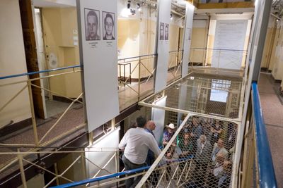 The museum preserves original solitary confinement cells where during the Stalinist period up to eight prisoners were confined in spaces designed for one person.