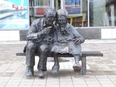 Para Kaszubów na ławce, Memorial sculpture bench in Plac Kaszubski, Gdynia, Poland.