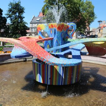 Fountain in Plac Wolności in Opole, water fountain, Old Town in Opole, Poland