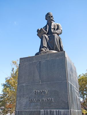 Monument to Vuk Karadžić, Bronze monument at King Alexander Boulevard, Belgrade, Serbia.