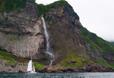 Ilya Muromets Waterfall, 185-meter waterfall on Iturup Island, Russia.