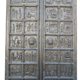 Created between 1152 and 1154 by Master Riquin and Waismuth in Magdeburg, the door traveled from Poland to Russia in the 13th century.