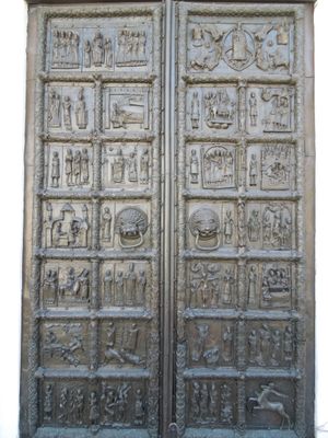 Płock Door, Medieval bronze door at Saint Sophia Cathedral, Veliky Novgorod, Russia.