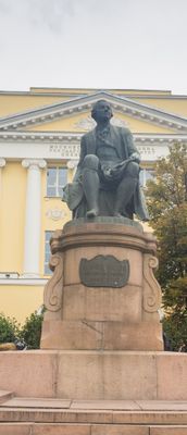 The monument honors a scholar who founded Moscow University and advanced knowledge across multiple scientific fields. The statue stands as a visible link between this historical figure and the educational institution located nearby.