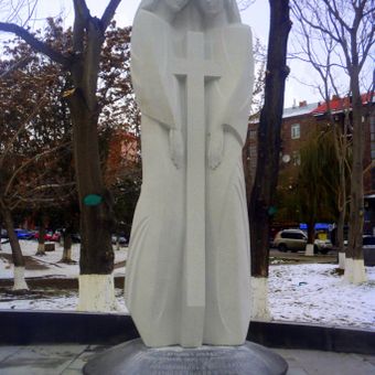 The monument stands in a public space with benches nearby, making it a meeting point for Russian and Armenian community gatherings.