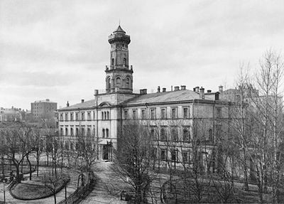 The Sushchyovskaya police station stands on Seleznyovskaya Street with a fire watchtower rising above the main structure, marking its position in the urban landscape.