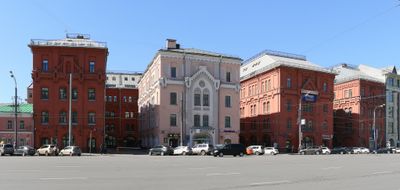 The buildings served as a commercial center with shops, offices, and apartments until 1917, reflecting the merchant class influence in Moscow.