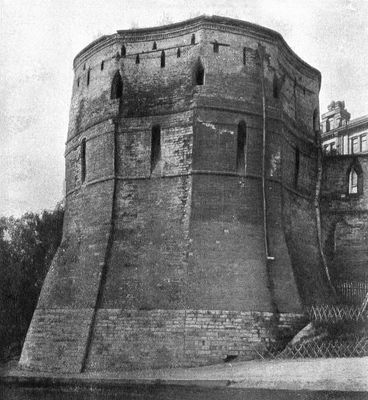 The Multifaceted Tower stood as a red brick circular structure with angular corners along the Kitay-gorod fortification system at Staraya Square.