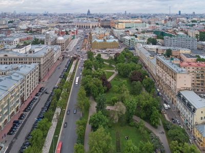 Located at the intersection of two metro lines, this garden provides direct access to both Slavyanskaya Square and Staraya Square through underground passages.