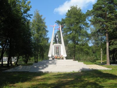 The memorial marks the location where 500 Red Army soldiers and civilians were executed by White Guard forces under General Yudenich in 1919.