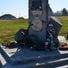 The monument stands on a platform enclosed by anchor chains mounted on concrete posts, with a dedication plaque listing the names of fallen cadets.