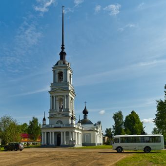 The church represents traditional Russian Orthodox architecture with its neoclassical design elements and continues to hold religious significance for local worshippers.