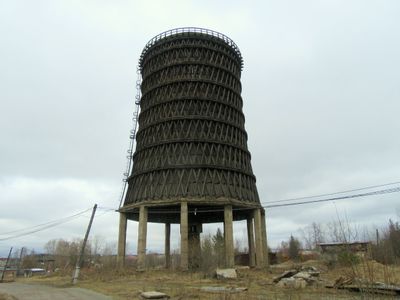 Wooden cooling tower, Industrial cooling tower in Severouralsk, Russia