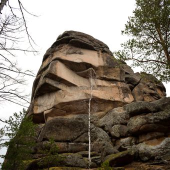 Скала Дед, Natural rock formation in Krasnoyarsk Stolby National Park, Russia.