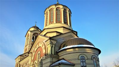 The Spiridon Trimiphuntskiy Church is an Orthodox temple in the Koptevo district of Moscow with a Neo-Byzantine dome and contemporary design. Inside, a carved iconostasis made from Georgian natural stone draws the eye, assembled from sections that were transported and installed piece by piece.
