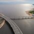 The 17-meter wide bridge features dedicated lanes for pedestrians and cyclists, providing efficient passage between residential areas and recreational spaces.