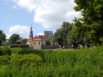 A fire in 1789 destroyed the main building, and insufficient funds led to its permanent state as ruins, while the wings were reconstructed.