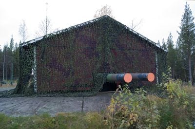 The facility represents Swedish military engineering from the Cold War period, incorporating naval artillery into a mountain fortress system along the Lule River valley.