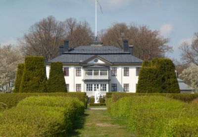 The property sits approximately 25 kilometers southeast of Stockholm and remains a private residence closed to public visits. Its location adjacent to a nature reserve makes the surrounding area of interest to those exploring the region.