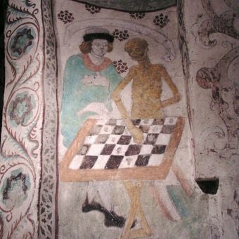 Death playing chess, Medieval mural in Täby Church, Sweden