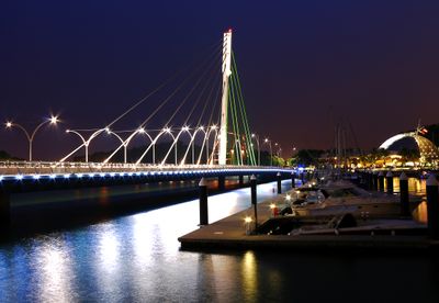 The bridge forms part of Singapore's southern waterfront development, connecting residential areas with the Marina at Keppel Bay's dining establishments.