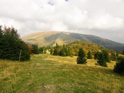 The Ploská mountain reaches an elevation of 1,532 meters and features extensive grassy areas across its summit within the Greater Fatra range.