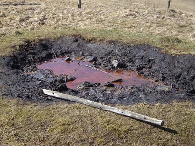 Korniansky ropný prameň, Natural petroleum reservoir at Čadca District, Slovakia.