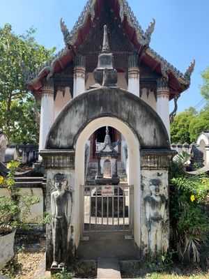 The temple complex includes multiple halls adorned with traditional Thai architectural elements, intricate carvings, and decorative murals depicting Buddhist teachings.