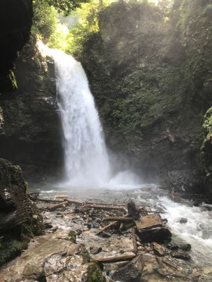 The waterfall's position within a microclimate zone results in year-round water flow, supporting an ecosystem of rare plant species native to the Black Sea region.