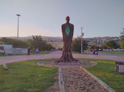 The Bornova Aşık Veysel statue reaches 5 meters in height and combines polyester with mud materials in its construction at Atatürk neighborhood.