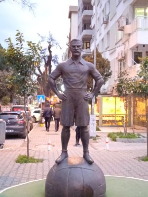 Bornova Futbolcu Heykeli, Bronze outdoor sculpture near Bornova Military House, Turkey.