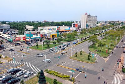 Zhongxiao Road spans through multiple districts of Taipei, connecting Zhongzheng district in the west to Nangang district in the east, with eight to ten traffic lanes.
